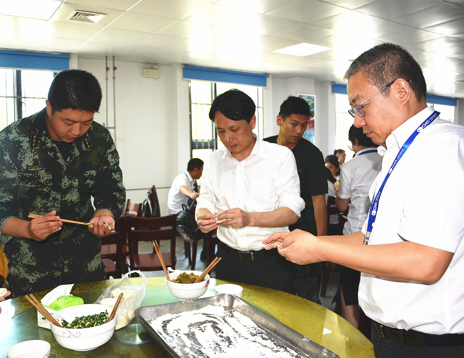 会议结束后,余董事长带领所有员工,和警卫中队的官兵们一起动手包饺子、吃水饺。至此,本次八一慰问活动在一片欢声笑语中圆满结束。