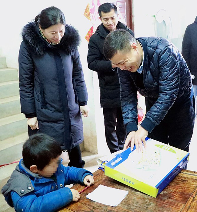 爱心志愿者蔡明为小震宇带来了学习机