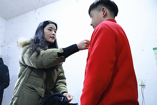 爱心大使王培为王书鹏穿上新棉衣