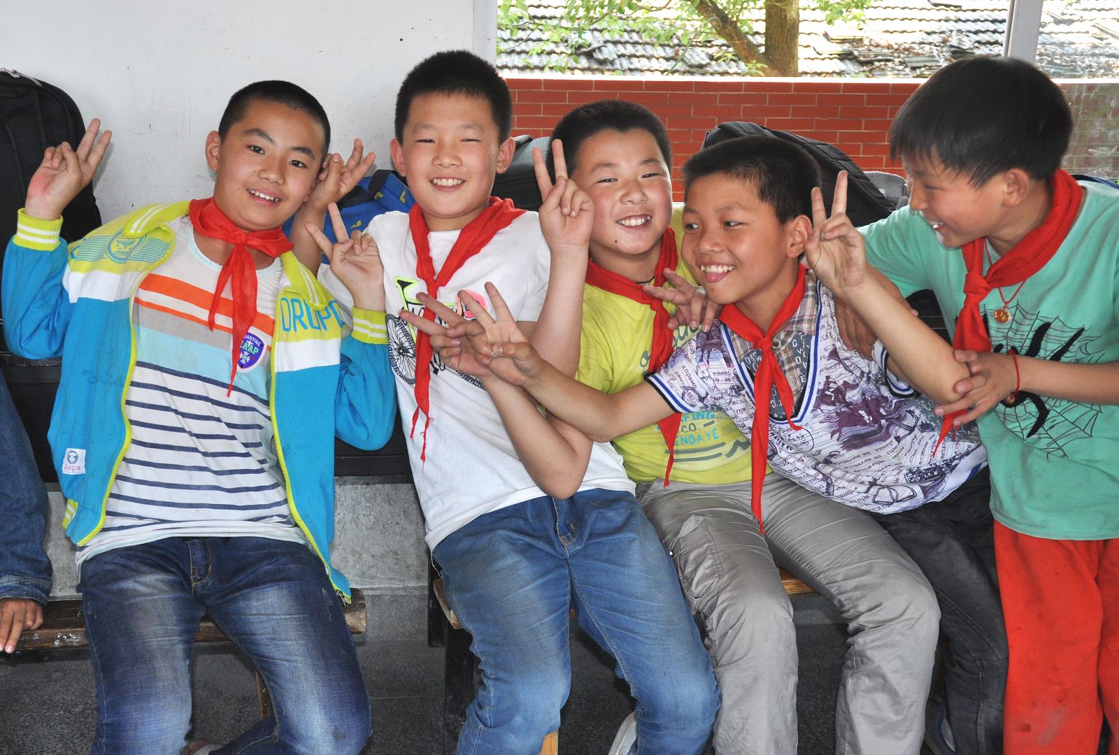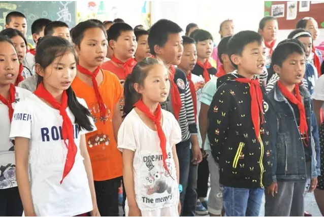 孩子们整齐划一唱国歌