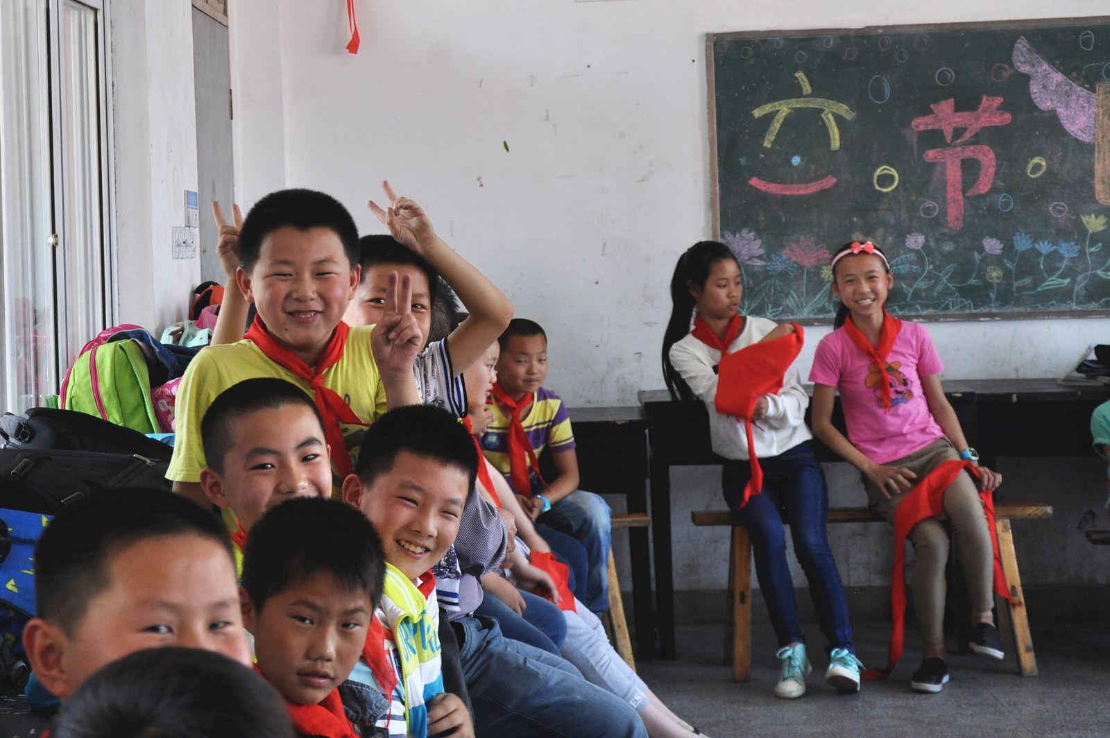 可以拥有全新的美术用品,学生们嬉笑打闹开心不已