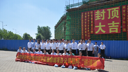余竹云董事长和集团领导,每到一个单位都与员工亲切握手,向员工们问好,感谢大家的辛勤努力和工作,并为员工送上饮料、藿香正气水、人丹、风油精、毛巾、香皂等防暑降温用品。在慰问的同时,余董事长亲切勉励项目公司领导和员工要紧紧围绕集团确定的项目目标,振奋精神,保持昂扬进取状态,精心组织施工,加强监督管理,确保安全和工程质量,把新的项目做成新的标杆工程、新的样板工程,向业主交出优质产品。执行总裁乔晓戈嘱咐员工要合理安排作息时间,备有充足的防暑降温用品,集团会力争为广大员工提供一个更加舒适的工作生活环境,确保安全生产。