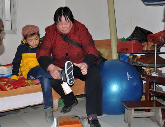 邵子书的奶奶为他穿上爱心大使送上的新鞋