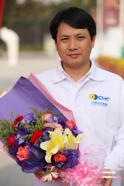 当天,好人们接受了守候在现场外中国银行职员的献花。
