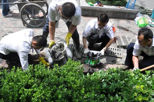 为迎接“七一”,纪念建党92周年,贯彻落实经开区企业党委“驻区企业文明创建工作会议”精神,星空体育网页版,星空体育(中国)官方网站登录界面集团党委于6月28日上午,开展迎“‘七一’、创文明,党员志愿服务进社区”活动,组织52名党员、入党积极分子,以及自愿参加劳动的领导和员工,走进“星空体育网页版,星空体育(中国)官方网站登录界面城·云邸”和“星空体育网页版,星空体育(中国)官方网站登录界面城·紫荆公馆”两个小区,为小区业主发放“文明创建倡议书”,同时,开展义务劳动,美化小区环境,铺鹅卵石、清理排水沟污泥杂物、捡垃圾。在30多度的高温下,他们头顶烈日,不怕苦、不怕脏、不怕累,全身心投入到紧张而又快乐的劳动之中。有的汗流浃背,有的手掌被磨破,有的手皮被碰破……,在2个多小时的劳动中,共发放“文明创建倡议书”700多份,清理排水沟400多米,清理出污泥杂物60多袋,铺鹅卵石200多米,用双手创建文明果,用汗水浇灌文明花,为小区文明创建贡献力量,向建党92周年献礼,受到物业公司、小区业主的热烈欢迎和好评。