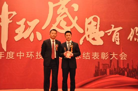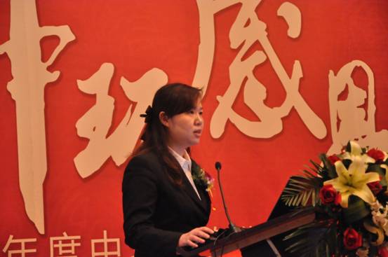 总裁助理余竹清总为精英奖颁发奖杯和奖金