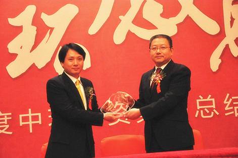 执行总裁乔总为优秀领导颁发奖杯和奖金
