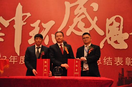 执行总裁乔总和集团各中心、分子公司负责人签订2014年目标责任书并颁发“信”字牌