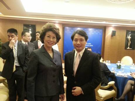 余竹云与美国前劳工部长赵小兰现场交流了青年教育基金的话题