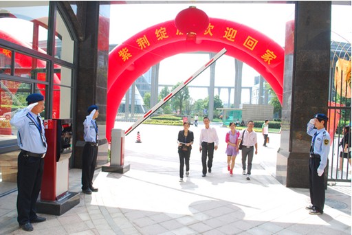 紫荆公馆的保安向每位业主敬礼致敬。这对年轻的业主一进门就更开心了:“感觉特自豪!”