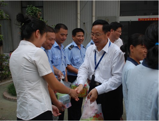 针对“秋老虎”时节高温多雨,天气闷热,一线员工经常露天作业,环境比较艰苦的特点,在6月份对集团公司全体员工进行普遍慰问的基础上,受集团董事长、党总支部书记余竹云同志的委托,集团行政管理中心总经理黄少铭,集团工会主席、党总支部副书记、行政管理中心副总经理汪本银等一行,于2011年8月17日下午来到物业“星空体育网页版,星空体育(中国)官方网站登录界面·国际广场”管理处和“星空体育网页版,星空体育(中国)官方网站登录界面·东方名景”管理处,对两个管理处坚守在一线岗位上的员工进行慰问,并为他们送去防暑降温用品。分管两个管理处工作的商业运营管理公司副总经理王雯陪同慰问。