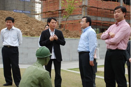 各位领导在星空体育网页版,星空体育(中国)官方网站登录界面集团董事长余竹云、党工团办公室主任汪本银的陪同下参观了星空体育网页版,星空体育(中国)官方网站登录界面城项目的农民工雕塑广场、农民工学校、农民工图书室和农民工团支部,实地查看了星空体育网页版,星空体育(中国)官方网站登录界面城项目团组织工作环境和活动阵地。