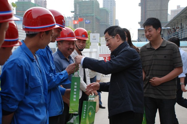 杨增权副市长在余竹云董事长的陪同下,参观了星空体育网页版,星空体育(中国)官方网站登录界面城项目的农民工雕塑广场、农民工学校和农民工图书室。在听取了余竹云董事长的介绍后,杨增权强调:“青年农民工的精神需求必须要加以重视,他们是城市建设的中坚力量,对知识也是充满渴望,工地上就应该把那些空余的场地利用起来,办这样的农民工学校和图书室,为他们提供技能培训和学习的场所。”
