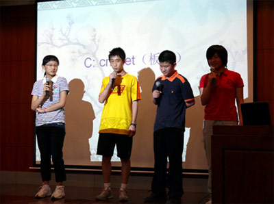 最为紧张还是单词猜猜猜环节。这个环节给大家带来的感觉是紧张并幽默了,组合搭配,一动一猜,选手们机智幽默的表现让在场很多人捧腹大笑,羡慕他们卖力的表现,羡慕他们纯真的表现,羡慕他们在赛场上勇于表现的精神。