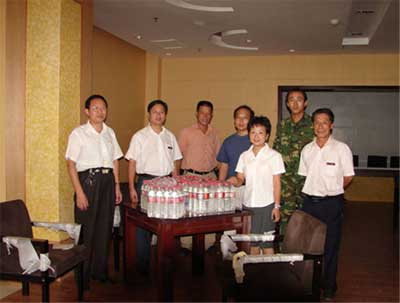 8月9日下午,受集团公司领导的委托,安徽星空体育网页版,星空体育(中国)官方网站登录界面投资集团公司人力资源部总监李霞和总裁办副主任汪本银代表集团公司领导顶着炎炎烈日来到物业公司和“星空体育网页版,星空体育(中国)官方网站登录界面-东方名景”建筑工地慰问了工作在一线的全体员工,向他们捎去了集团公司领导的问候,送上一份夏日的清凉——防暑降温慰问品。对不畏高温、坚持在一线辛勤工作的干部职工表示慰问和感谢,并代表公司再次强调在高温季节更要注意工作及人身安全防护工作,做到质量、安全、效益三不误。