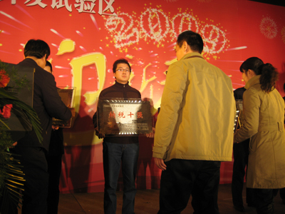 在联欢会开始前,新站综合开发试验区领导向前来参加联欢会外商投资五强、纳税十强企业代表等发表了热情洋溢的致辞,表彰了为合肥市经济建设做出突出贡献的企业,并颁发了“纳税十强”的奖牌。