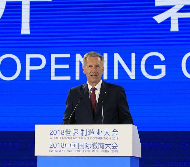 随后,全球中小企业联盟全球主席、德国前总统克里斯蒂安·武尔夫在致辞中,对安徽的投资环境大加赞赏。他说,安徽省是全球制造业的理想投资之地。“这是我第四次来到合肥,每次来合肥都给我带来不一样的感受。合肥日新月异的变化以及发展成就,令世人惊叹。”