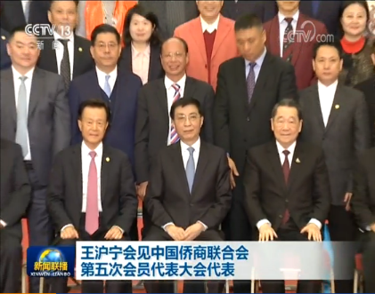王沪宁会见中国侨商联合会第五次会员代表大会代表