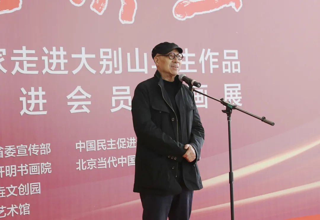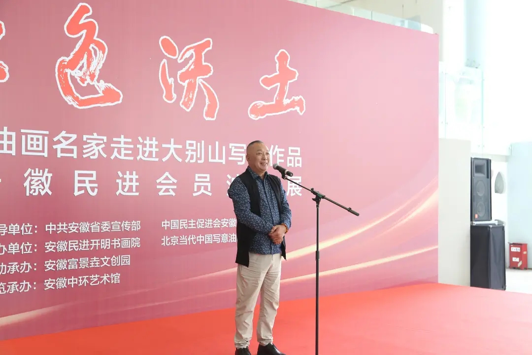 安徽省政协副主席、民进省委主委李和平代表民进安徽省委致开幕词。他首先向莅临开幕式的各位领导和来宾表示热烈欢迎,向参加本次展览的各位油画名家、艺术界的朋友表示衷心感谢!他表示,各位油画名家不畏严寒、不畏艰辛,于2020年12月,在零下三度的恶劣天气深入安徽大别山采风创作,大家沿着五年前习近平总书记来安徽大别山走过的路,勤奋挥笔,创作了80余幅不同寻常的巨构佳作。这些作品既有对大别山红色历史的缅怀,又有对大别山绿色生态的欣喜,还有对新时代老区人民在奔小康的金色道路上取得成就的歌颂。这是一次不同寻常的艺术采风活动,更是一次中国油画家面对红色沃土,体现出的一次内心升华的致敬之旅。