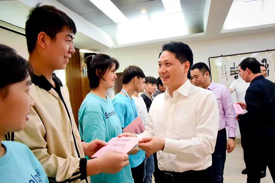 座谈会上,董事长余竹云就“教育援疆、校企合作”同校方和获奖学生代表进行交流。深入了解在皖新疆籍学生的教育、生活情况,对学生毕业后的就业、继续深造和返乡创业情况进行调研,鼓励在皖新疆地区学生要铭记党恩,学以致用,通过努力工作来回馈家庭,回报母校,为社会创造更大的价值。