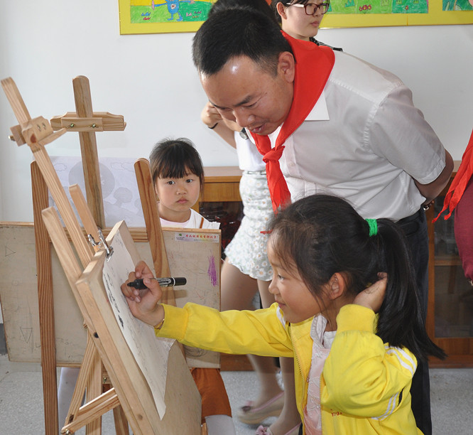 陶总亲切与孩子交流绘画思路