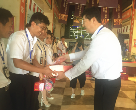 结束物流公司的慰问之后,高总及工会领导一行又马不停蹄的前往北城项目公司。北城项目公司的员工们列队鼓掌欢迎高总的到来,并表示将会以更好的工作状态来报答领导的关爱。随后,高总一行为员工们送上防暑降温物品。当天同时慰问了北城物业管理处的一线员工。