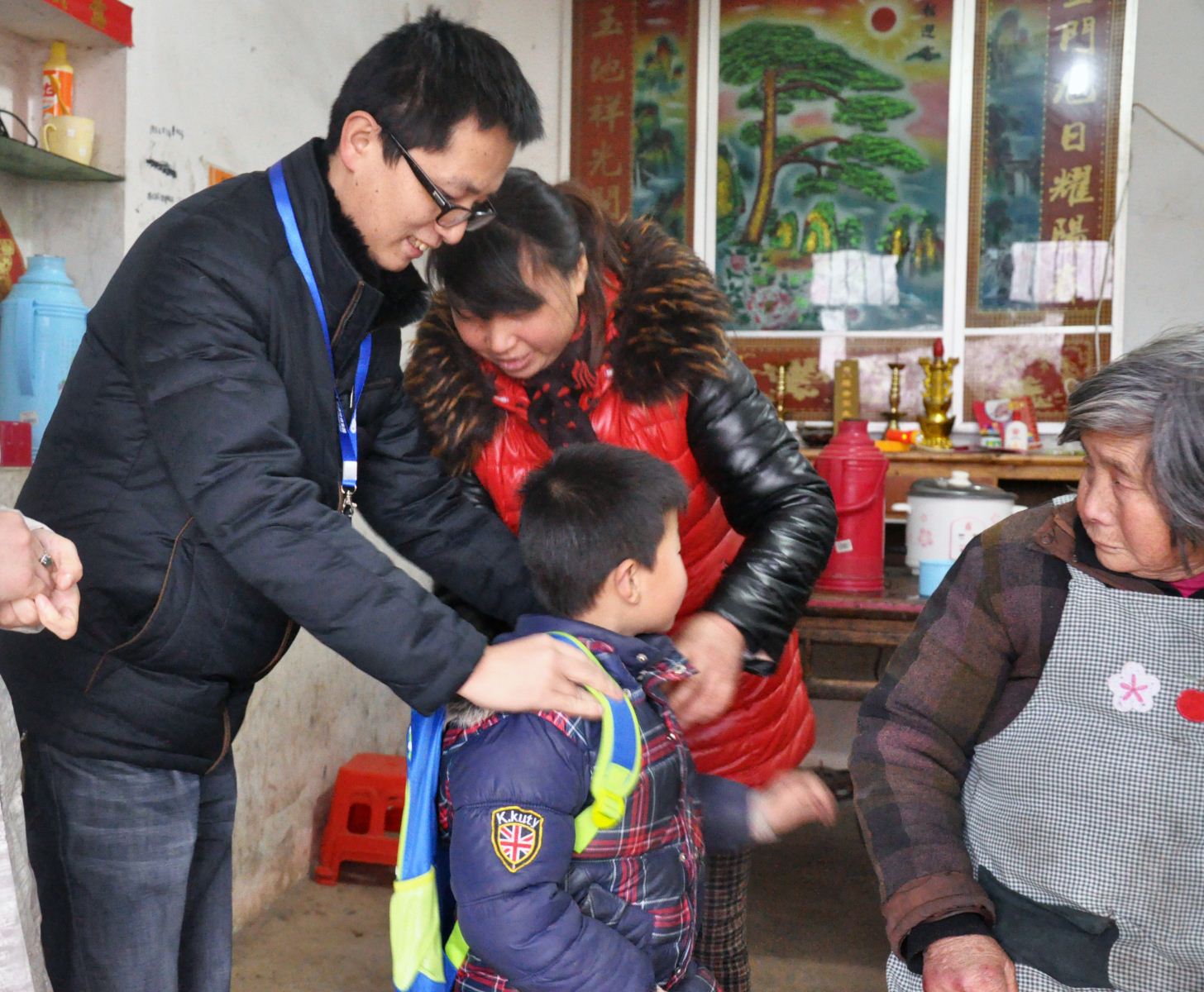 6日是农历小寒,开始进入一年中最寒冷的日子。而小良的姑姑早已在村口等待着我们,陪同志愿者们接孩子放学。孩子走出校门时,小脸被冻得通红,虽然略带羞涩,但看到姑姑和志愿者们依然绽放出天真的笑容。