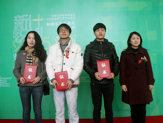 (安徽大学艺术学院党委书记徐素萍为优秀奖获得者颁奖。)