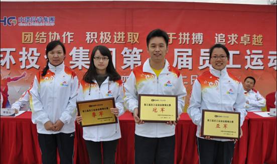 本届运动会除了10支参赛代表队角逐11项金牌外,还增加高管4*100米接力赛,集团董事长余竹云、执行总裁乔晓戈以及来自各中心、子公司20名高管分5组决赛,李钡、刘爱金、刘凯、陶龙组获得冠军,乔晓戈、黄少铭、张雪亮、许勇组最后一棒反超获得亚军,余竹云、李宝山、刘伟、王涛组获得季军。决赛中大家不分职位高低,都竭尽全力,奋勇向前,不断传递着正能量。