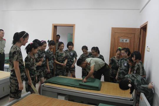 教练教童子军叠被子