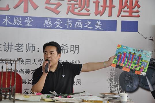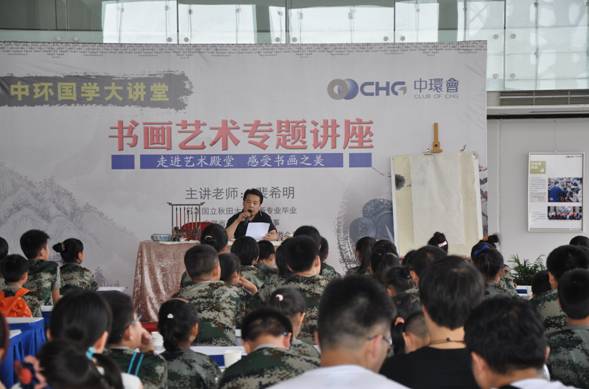 军旅文化体验结束后,下午13:30,孩子们来到星空体育网页版,星空体育(中国)官方网站登录界面艺术馆,参加本届星空体育网页版,星空体育(中国)官方网站登录界面国学大讲堂,聆听艺术名家裴希明老师书画艺术专题讲座。除了现场书法、现场绘画、现场演示观摩等,裴希明老师为童子军娓娓讲述了中国传统书画艺术起源,传授中国书法与绘画基本技法,教大家如何鉴赏书画艺术作品,并分享了自己的日本求学之路与艺术人生感悟。据了解,裴希明老师毕业于日本国立秋田大学绘画专业,是安徽省美术家协会理事、日本国秋田县绘画美术院特邀会员,现在是合肥中日友好美术馆创作员,黄宾虹美术馆副馆长,专职画家。