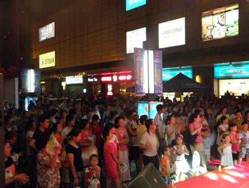 活动现场数千名观众与摇滚乐队一同享受音乐大餐,购物中心北广场闪动着摇滚与激情碰撞的火花。乐队演出间隙,更有合肥土著原创说唱歌曲—《挖芋头》创作者唐维峰上台与观众热情互动,气氛一度爆棚。引来了现场观众的阵阵掌声和喝彩。路过的顾客无不驻足观看,其中甚至有很多年轻的家长带着孩子都跟着音乐不由自主的摆动。