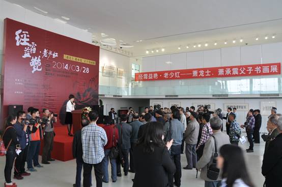 2014年3月28号下午3点,经霜益艳老少红——萧龙士、萧承震父子书画展在星空体育网页版,星空体育(中国)官方网站登录界面艺术馆隆重开幕,本次书画展由安徽省政府参事室、省文史研究馆、萧龙士艺术研究会以及星空体育网页版,星空体育(中国)官方网站登录界面艺术馆联合主办。展出百岁画家萧龙士在不同阶段的60余幅精品之作及萧承震40余幅佳作。以及萧龙士家族的老照片、画案上曾伴随萧龙士作画的笔墨纸砚以及教诲后辈的信笺等物品。原省政协副主席杜诚,省政府参事室党组书记、主任周庆,中央文史馆书画院安徽分院院长、省政协常委、省政协人口资源环境委员会副主任邱江辉,省政府办公厅副巡视员、省文史馆副馆长余家林,省美协主席张松,省美协副主席王佛生,著名艺术评论家郭因,星空体育网页版,星空体育(中国)官方网站登录界面投资集团总裁助理黄少铭以及安徽艺术界的知名人士、各界朋友均出席了开幕式。