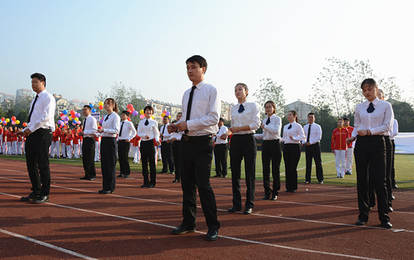 在开幕式上,每年例行的表演环节依旧充满着惊喜与期待。今年,物业公司的男子兵团与女子兵团齐齐上阵,表演的军体拳包括擒敌拳、棍术、头开钢板等,体现了过硬的业务素质和严格的训练标准。而接下来,商管公司表演的歌曲舞蹈《咋了爸爸》,飘荡着活力青春,体现了商管公司团队和谐友好的合作精神以及积极乐观的工作态度。