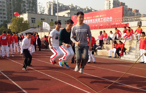 首先展开鏖战的是拔河比赛。这是参赛人数最多的项目,也是最考验团队合作力量的竞技项目。数轮力量的比拼,中港物业代表队毫无悬念的首战告捷,摘得运动会的第一枚金牌。在五人制的跳绳项目中,商管公司代表队以一分钟105个的成绩刷新了去年的比赛最高记录,再次夺得冠军的宝座。