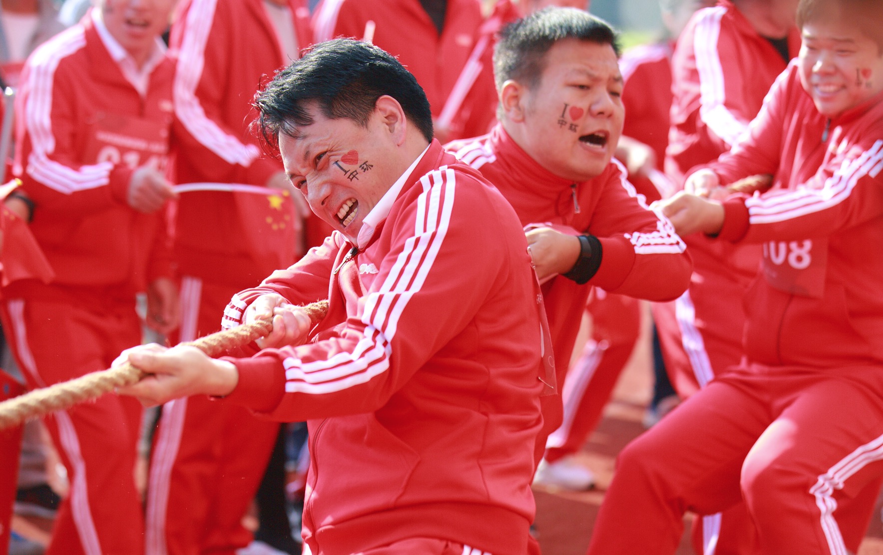 首先展开鏖战的是拔河比赛。这是参赛人数最多的团队项目,也是最为鼓舞士气的项目。经过层层厮杀,中港物业代表队首战告捷,摘得本届运动会首枚金牌。趣味项目横行天下,以全新的方式考验了各代表队运动员团队协作能力。