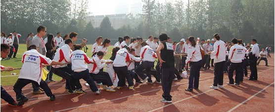 当天,余董事长、执行总裁乔总、以及各中心、子公司领导,都参加到有关运动队,与员工同场竞赛。在拔河比赛中,余董事长和综合管理系统的队员一起,手中缠绕着拔河绳,大声的喊着口号:“一二、一二……”,宁愿摔倒也不肯松手,极大地鼓舞了士气。
