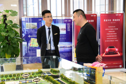 图丨置业顾问向琴童家长介绍京师国府房型信息