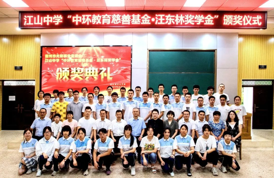 图 | 2021年度星空体育网页版,星空体育(中国)官方网站登录界面教育慈善基金颁奖仪式首站衢州一中优秀学子与录取通知书合影
