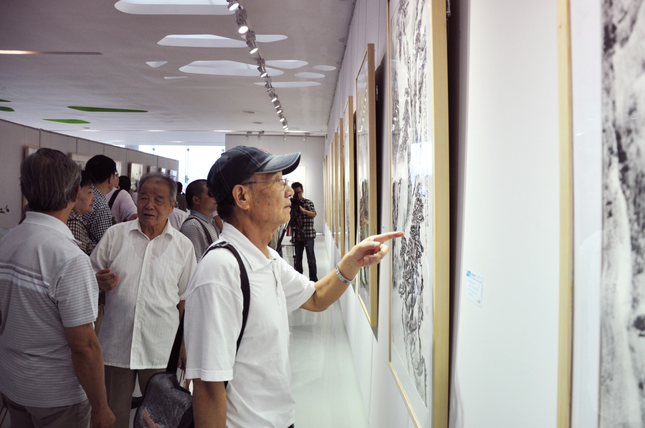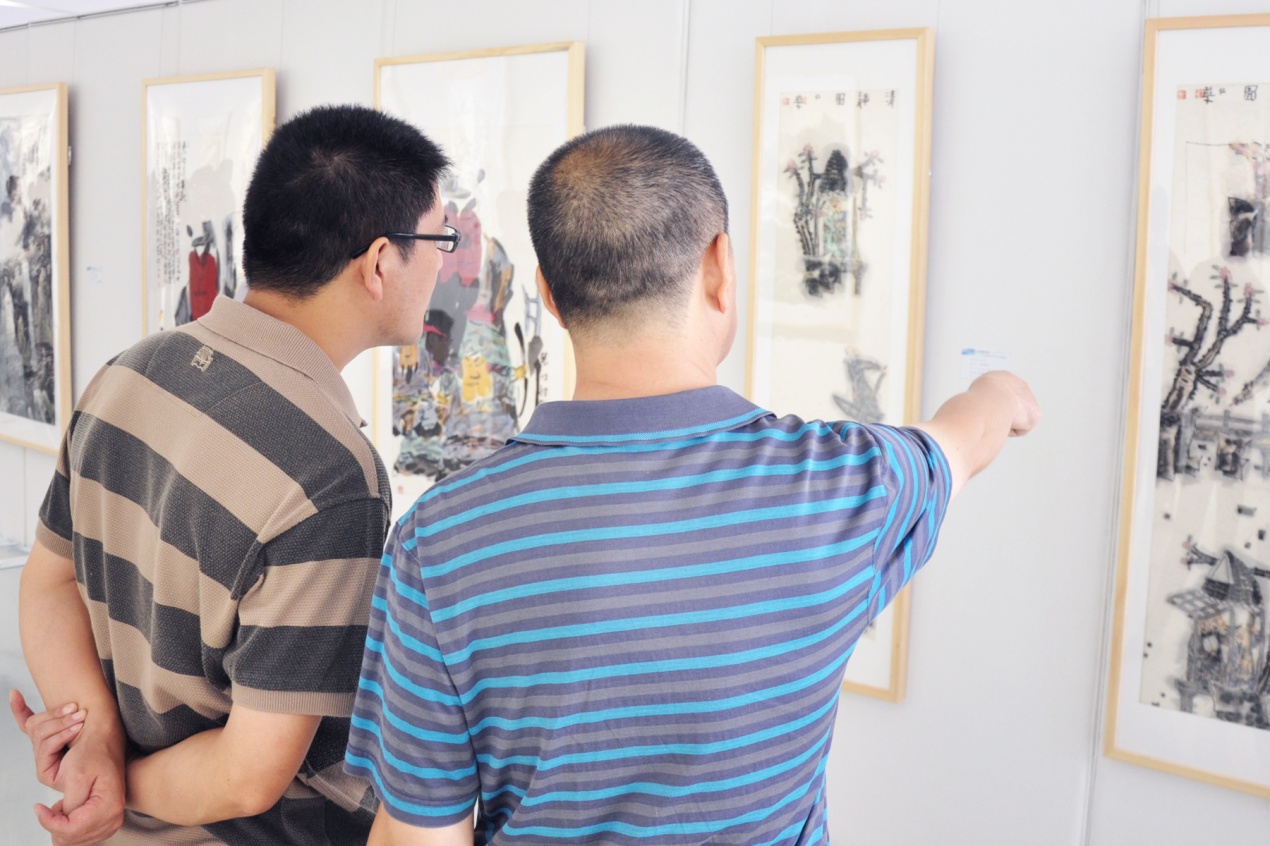 美术爱好者现场讨论展画