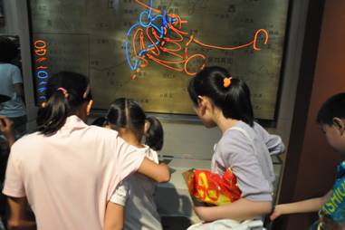 参观的高潮环节是一段现场模拟当年渡江战役的3D影像,画面上的飞机、大炮、机枪、帆船和背景音效的枪声,生动地再现当时渡江气势磅礴的画面,触动了现场每一位小童子军。