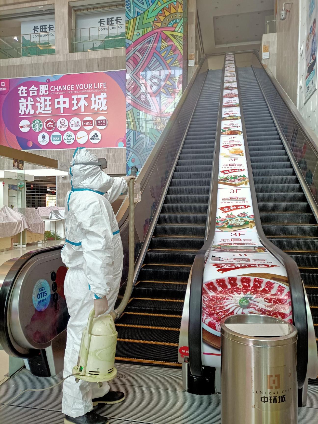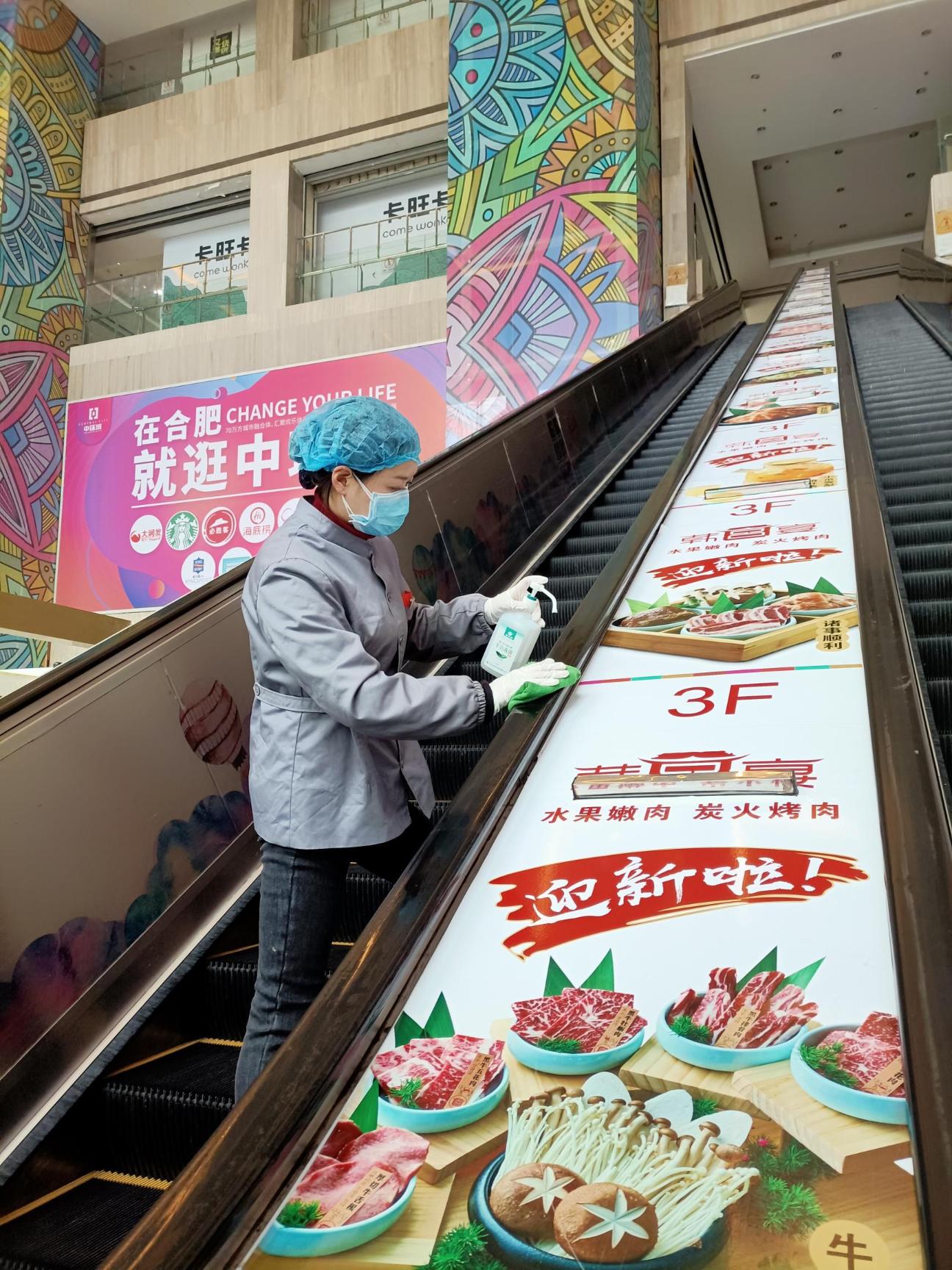 图丨星空体育网页版,星空体育(中国)官方网站登录界面工作人员对商场扶梯进行全方位消杀