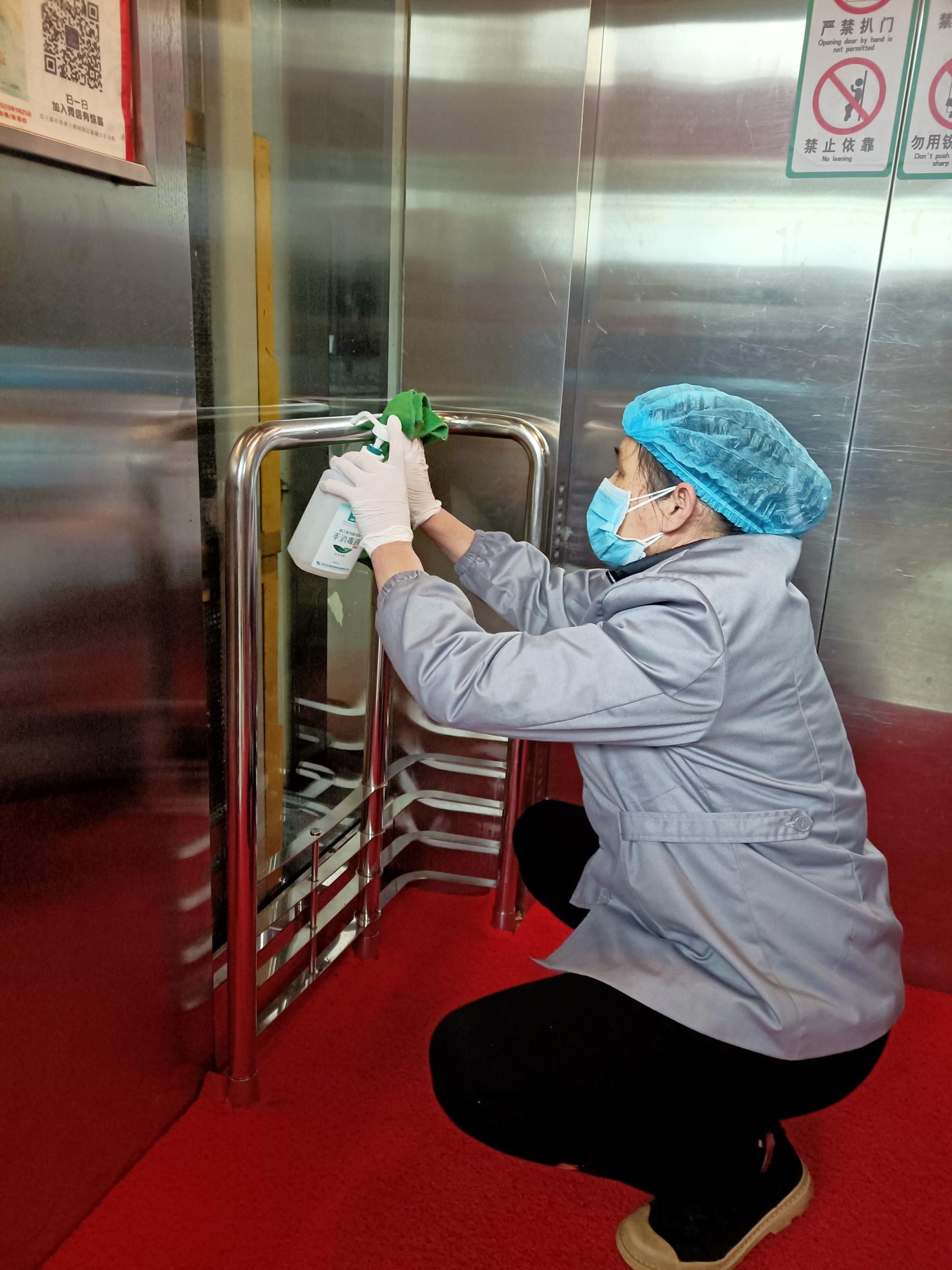 图丨星空体育网页版,星空体育(中国)官方网站登录界面工作人员对电梯进行消杀