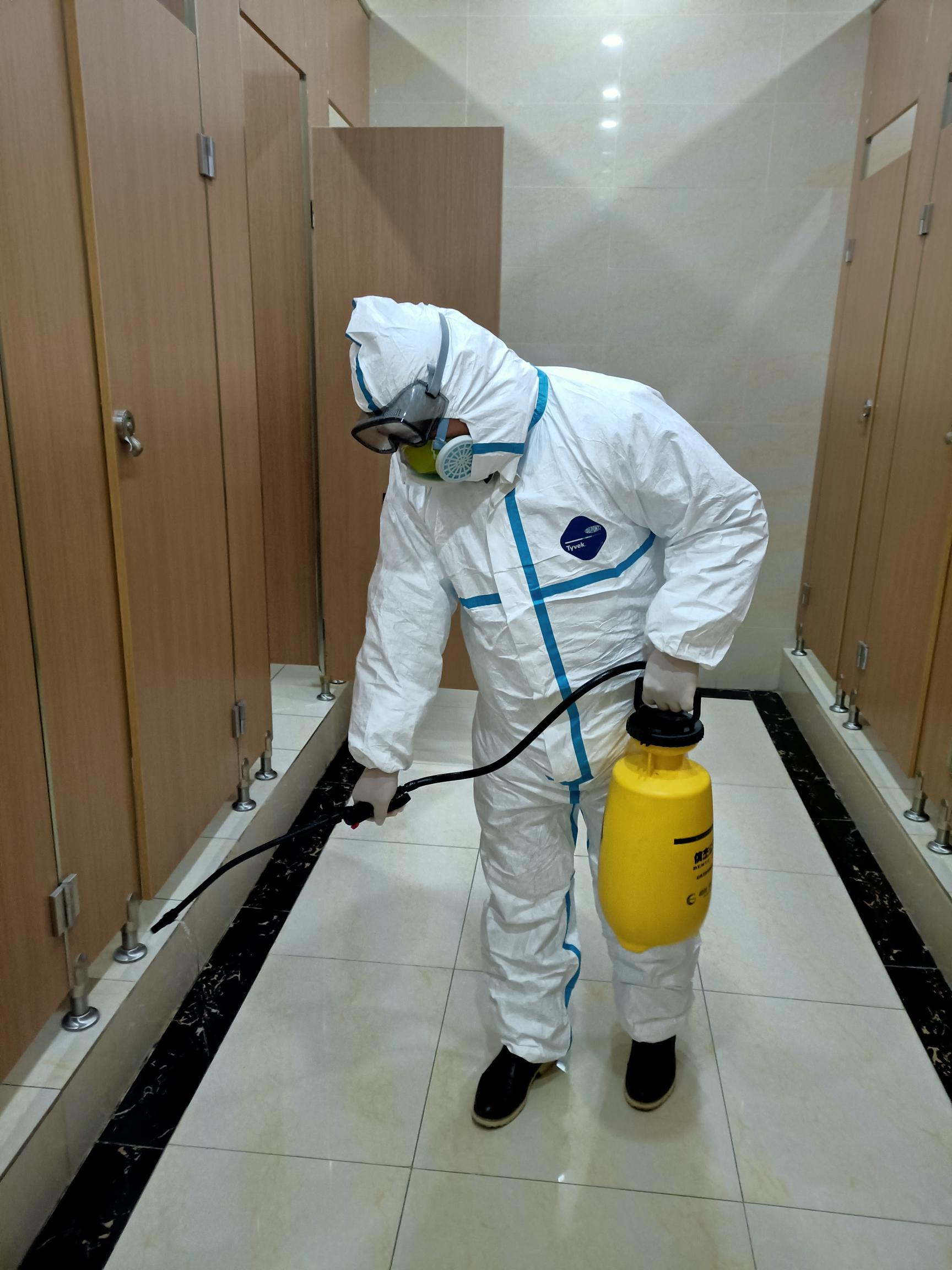 图丨星空体育网页版,星空体育(中国)官方网站登录界面工作人员在卫生间喷洒消毒液
