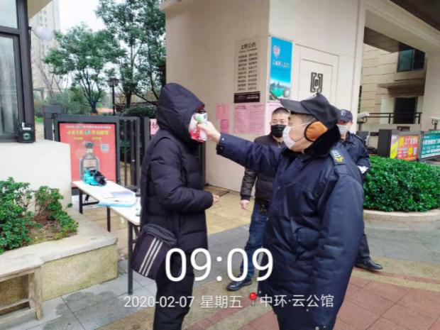 为响应政府严格防控的号召,中港物业各小区进行封闭管理,对来访探亲访友人员耐心劝返;对于进出小区的所有人员的居住区域及来去向仔细记录排查,并进行体温监控,如有异常,及时上报有关部门。
