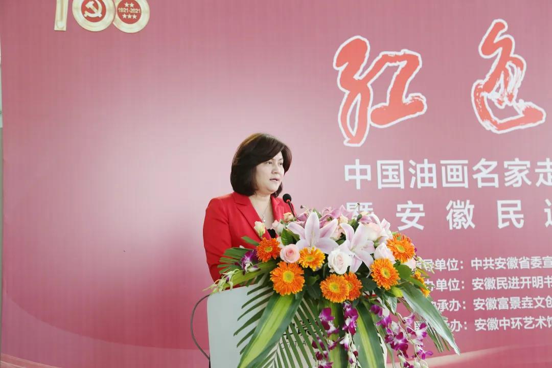 安徽省政协副主席、民进省委主委李和平代表民进安徽省委致开幕词。他首先向莅临开幕式的各位领导和来宾表示热烈欢迎,向参加本次展览的各位油画名家、艺术界的朋友表示衷心感谢!他表示,各位油画名家不畏严寒、不畏艰辛,于2020年12月,在零下三度的恶劣天气深入安徽大别山采风创作,大家沿着五年前习近平总书记来安徽大别山走过的路,勤奋挥笔,创作了80余幅不同寻常的巨构佳作。这些作品既有对大别山红色历史的缅怀,又有对大别山绿色生态的欣喜,还有对新时代老区人民在奔小康的金色道路上取得成就的歌颂。这是一次不同寻常的艺术采风活动,更是一次中国油画家面对红色沃土,体现出的一次内心升华的致敬之旅。
