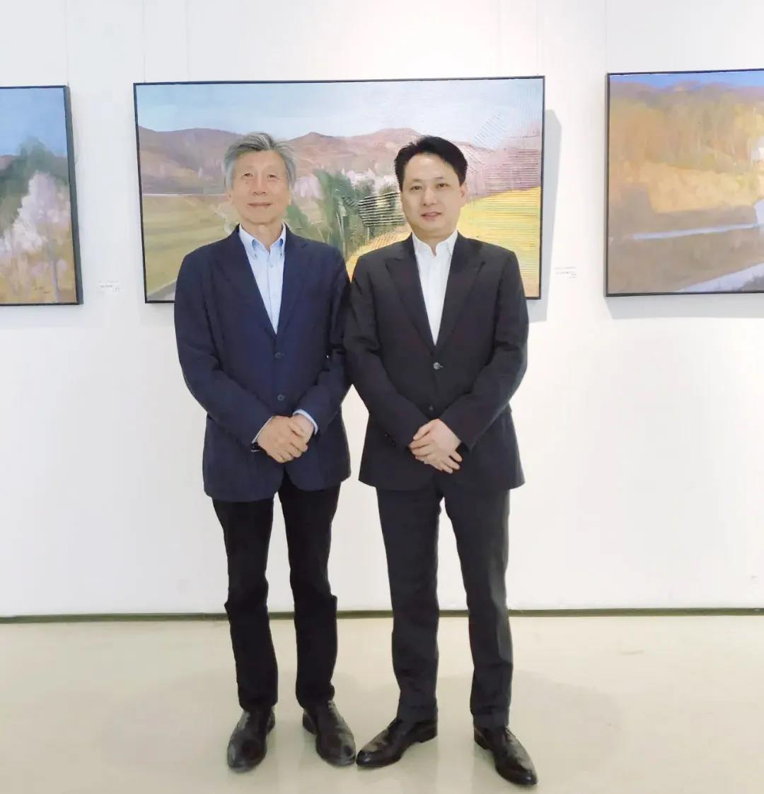 图 | 中国美协主席、中央美术学院院长范迪安与星空体育网页版,星空体育(中国)官方网站登录界面控股集团董事长余竹云合影