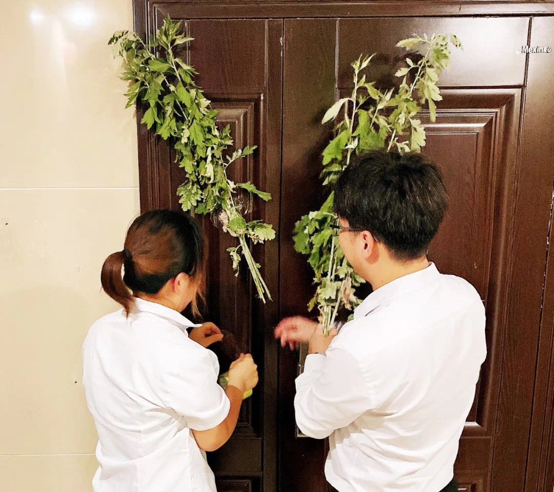 “采艾以为人,悬门户上,以禳毒气”。在端午来临之际,中港物业各管理处为业主们准备一把长长的艾草。临泉观堂物业工作人员为身处异地、不能返家的业主门前插上艾草,这一把艾草或许只是节日的标志,但承载着是物业人员对创造美好社区生活的憧憬与期望。