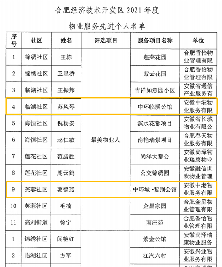 近日,合肥经济技术开发区、长丰县双墩镇清颖社区分别授予所在区星空体育网页版,星空体育(中国)官方网站登录界面控股集团旗下中港物业紫荆公馆项目经理葛德燕、星空体育网页版,星空体育(中国)官方网站登录界面湖滨公馆项目经理苏风琴、北城星空体育网页版,星空体育(中国)官方网站登录界面城项目经理张本汉“最美物业人”、“物业服务之星”荣誉称号。
