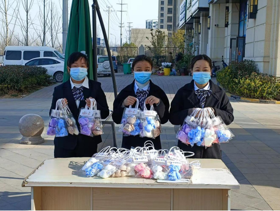 图 | 临泉湖畔公馆派送小熊毛巾现场